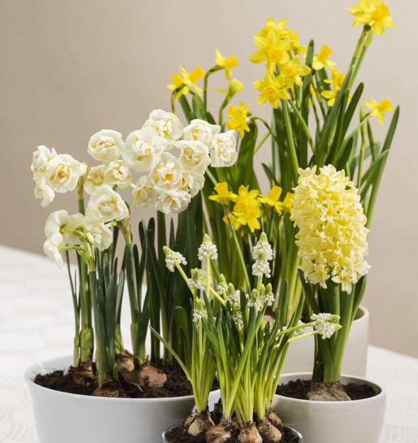 Tetenarsissin lisäksi kevättä ilahduttavat muut isokukkaiset narsissit ja helmililjat. Myös perinteisesti joulukukiksi miellettyjä hyasintteja on saatavilla myös keväällä, keväisissä väreissä.