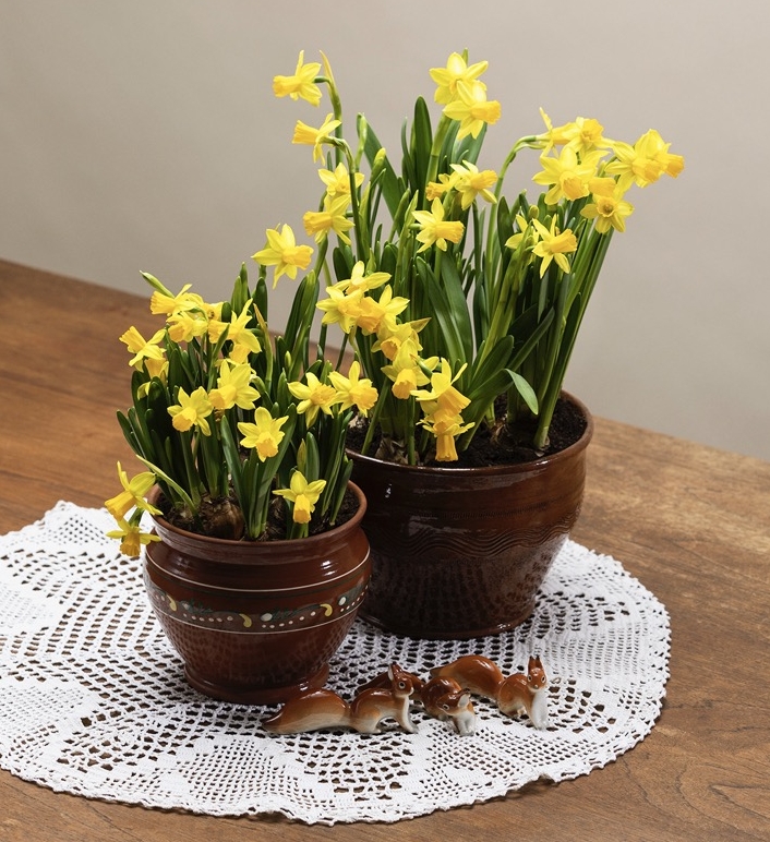 Narsisseista saa hauskoja yhdistelmäistutuksia ja ne käyvät myös maljakkoon! Narsissien varret erittävät limaista nestettä, joten samaan vaasiin ei kannata laittaa heti muita kukkia.