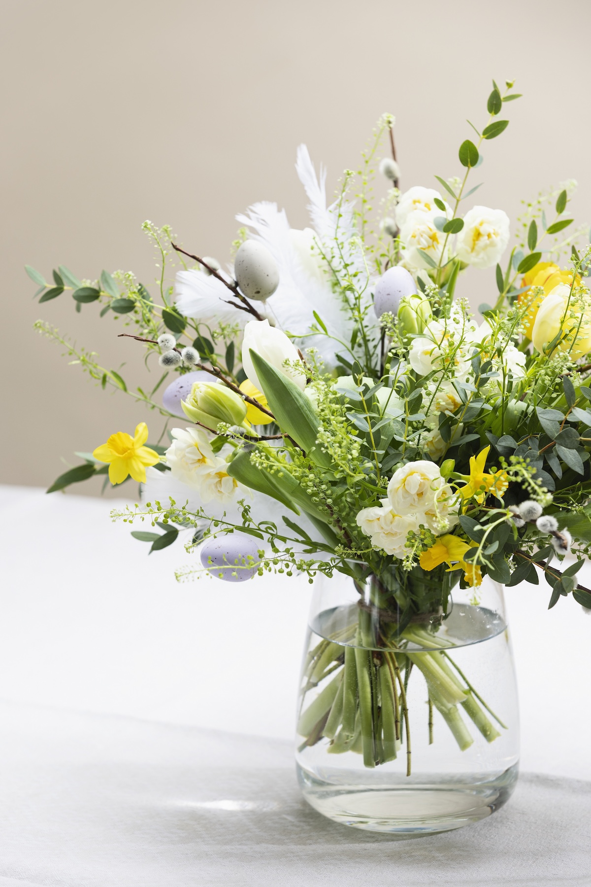 Voit loihtia kauden kukkia yhdistelevän kimpun itse tai kääntyä ammattitaitoisen floristin puoleen kukkakaupassa. Jos käytät narsisseja leikkokukkana, sitä kannattaa pitää ensin pari tuntia erillään omassa maljakossaan – narsissin varresta irtoava neste saostuttaa veden helposti.